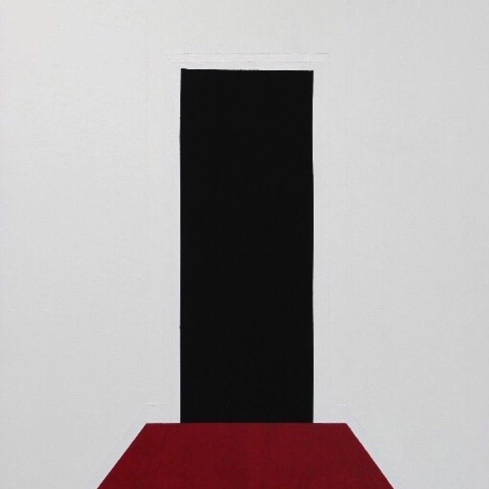A minimal, proportioned composition, with the hall stripped, door completely absent, this work is about the interplay of textures and finishes, from the lush deep red carpet, and the glossy white, almost there doorframe against the chalk satin-finish walls; sanded, primed and painted just like a real wall. Through the threshold lies the void, this textureless non-presence that reflects nothing, swallowing the space. Recycling us all.